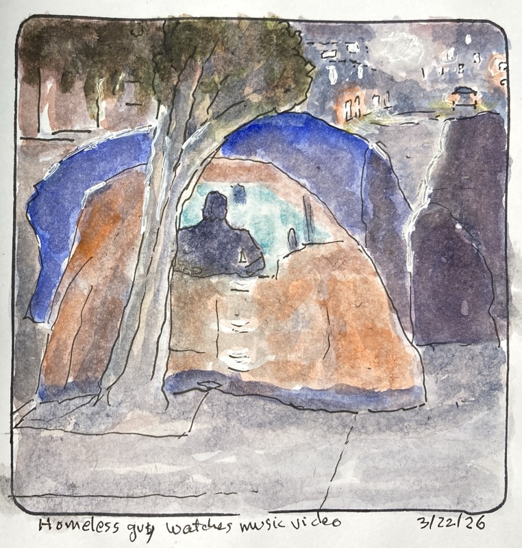 I do Urbansketching: real things with comments, mostly. I write explanations because I was a scientist (retired now) and documented things and explained stuff for a living. Urbansketching is about documenting the world around you, including its history, and nearby stars, moons, and planets when there’s news from them.