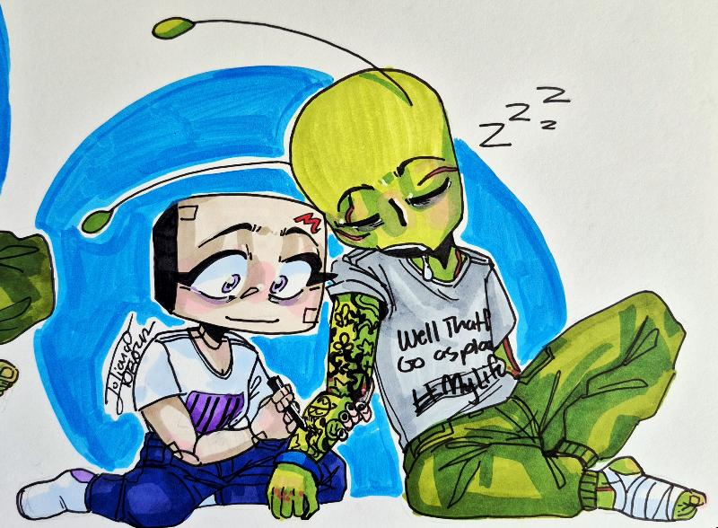 Hello, my name is Juliana (She/Her)... I'm a Christian girl and just a socially awkward, mentally confused artist trying to survive a world that i don't understand. I LOVE foxes, MATCHA, Psychology, and sci-fi, I also like comics and graphic novels, music, and not talking to people or going outside...or bugs... Im just a little alien artist👽🎨 (My twin sister is @LivzDOODLEz !!) My OCs: Markers and J, Dax, Twitch, and Jabbir ADHD and Social Anxiety for the win!!❤️🩹✏️